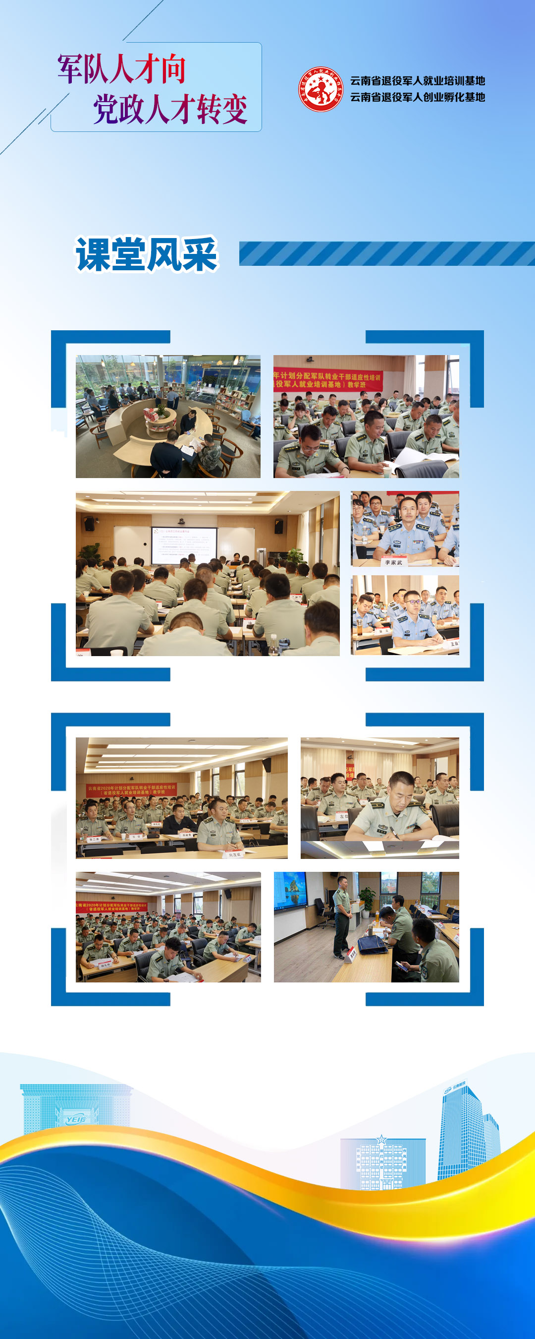 此次培訓課程內容豐富,針對軍轉干部實(shí)際情況,按照“缺什么學(xué)什么,需要什么學(xué)什么”的原則,開(kāi)設了軍轉安置形勢與政策、省情社情介紹、云南黨政機構設置與職能、公務(wù)員制度及管理和心理調整等19門(mén)課程。培訓班精心挑選授課師資,在專(zhuān)業(yè)理論上,結合地方院校的優(yōu)秀資源,邀請知名教授進(jìn)行授課;在培訓內容上,邀請各廳、局領(lǐng)導干部講授工作心得和工作方法;在示范交流上,邀請成功轉型軍轉干部領(lǐng)導,以身說(shuō)教。培訓方式靈活多樣,為滿(mǎn)足疫情防控小班教學(xué)的要求,培訓期間設一個(gè)主教室,其他教室同步進(jìn)行直播,將專(zhuān)題講座、晨讀、晨唱、分組討論、觀(guān)看廉政教育片、現場(chǎng)教學(xué)與文體活動(dòng)有效結合。